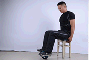 办法3:演习小腿---坐在座椅上,两脚放在健腹轮手柄上,用脚推进健腹轮��򄅉,向前延长,然后收受接管归位,重复操作。