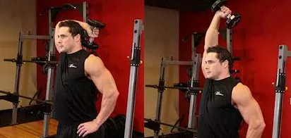 身 体 和 上 臂 保 持 不 动 , 收 缩 三 头 肌 , 把 前 臂 向 后 上 方 挺 伸 , 直 到 臂 部 完 全 伸 直 , 同 时 彻 底 收 缩 三 头 肌 。 静 止 一 秒 钟 , 再 屈 肘 , 让 前 臂 徐 徐 下 垂 到 开 始 位 置 。