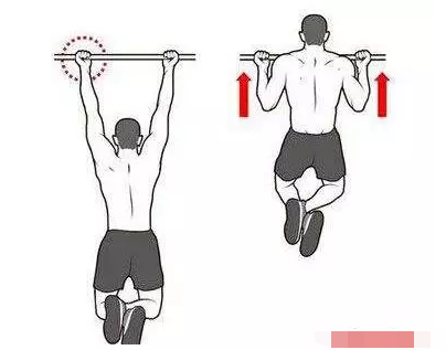 动 作 过 程 : 用 背 阔 肌 的 收 缩 力 量 将 身 体 往 上 拉 起 , 当 下 巴 超 过 单 杠 时 稍 作 停 顿 , 静 止 一 秒 钟 , 使 背 阔 肌 彻 底 收 缩 。 然 后 逐 渐 放 松 背 阔 肌 , 让 身 体 徐 徐 下 降 , 直 到 回 复 完 全 下 垂 , 重 复 再 做 。 可 以 弯 曲 膝 关 节 、 将 两 小 腿 向 后 交 叉 , 使 身 体 略 微 后 倾 , 能 更 好 地 锻 炼 背 部 肌 肉 。