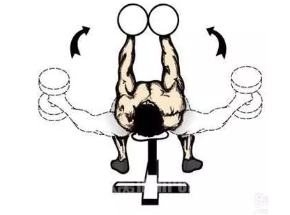 平 卧 哑 铃 飞 鸟 动 作 : 身 体 平 躺 于 窄 凳 上 , 使 肩 部 可 以 自 由 活 动 , 手 持 哑 铃 双 臂 向 上 伸 直 , 肘 部 微 屈 避 免 健 身 锁 定 状 态 。 吸 气 , 两 臂 张 开 平 稳 下 滑 , 使 肘 与 肩 同 高 。 呼 气 的 同 时 推 举 哑 铃 至 初 始 位 置 。