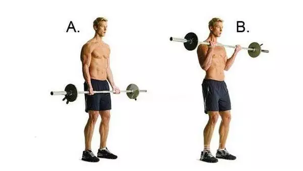 1 身 体 直 立 , 中 握 距 ( 同 肩 宽 ) 正 握 杠 铃 , 垂 于 体 前 。 两 上 臂 贴 紧 身 体 两 侧 、 向 上 弯 举 , 注 意 力 集 中 在 整 个 肱 二 头 肌 上 , 至 肱 二 头 肌 完 全 收 紧 稍 停 ;��。