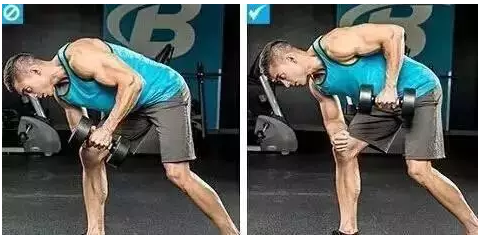 起 始 姿 势: 两 脚 分 开 站 立 同 肩 宽 , 两 手 掌 心 相 对 持 哑 铃 , 上 体 向 前 屈 体 至 与 地 面 平 行 , 两 腿 稍 屈 , 使 下 背 部 没 有 拉 紧 感 。