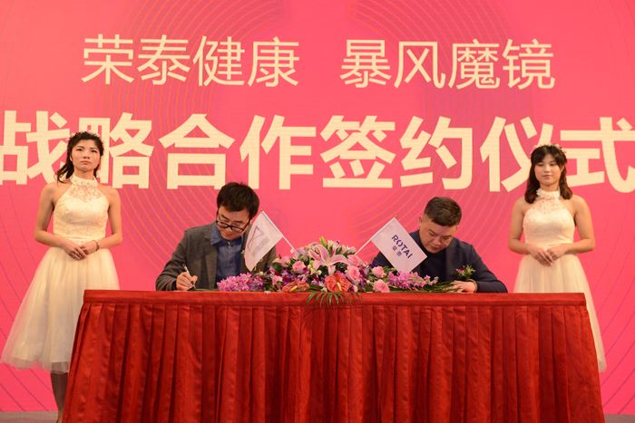 荣泰健康总经理林琪先生与暴风魔镜CEO黄晓杰先生签署战略合作协议