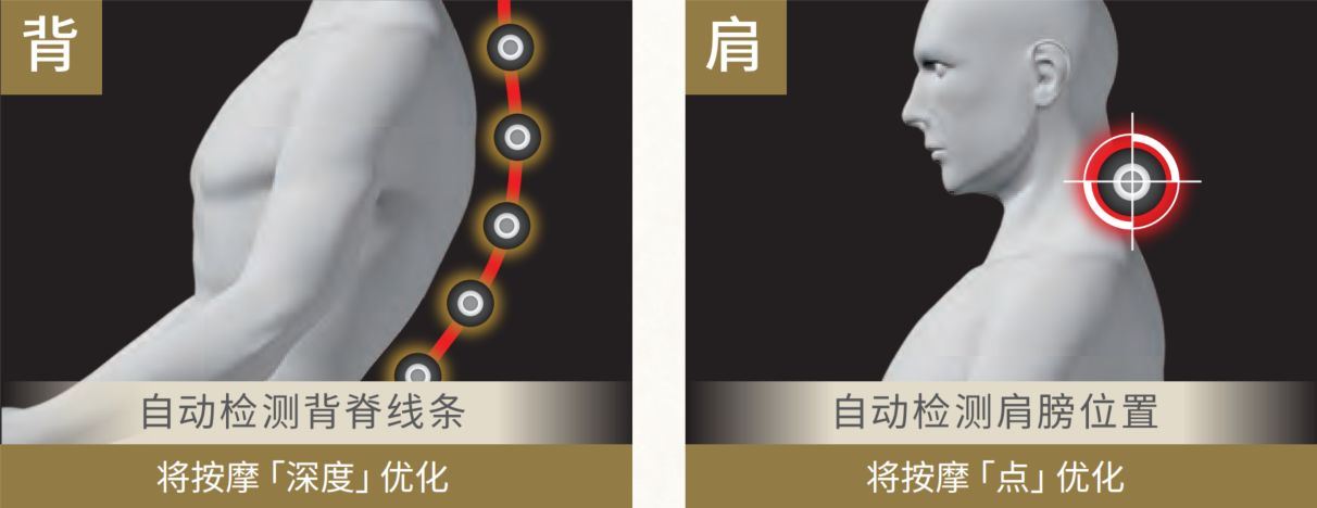 搭�򄏍;载的双重检测系统,自动感应背脊线条及肩膀位置,优化按摩的深度及按摩点,智能检知身体不同部位的压力和肌肉的酸痛状况,使按摩更加的贴合。同时拥有12段强弱调节,选择适合的强度,实现个性化按摩。