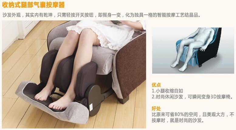 该产品是根据标准的人体美学设计而成,看似随性的架构设计,其实是设计师用心良苦的设计,他根据人体各个关节的舒适度打造而成,兼顾按摩的同时也注重人的坐卧舒适度。累了的时候就算把他当做一件普通的沙发坐上去,也是非常的舒适。