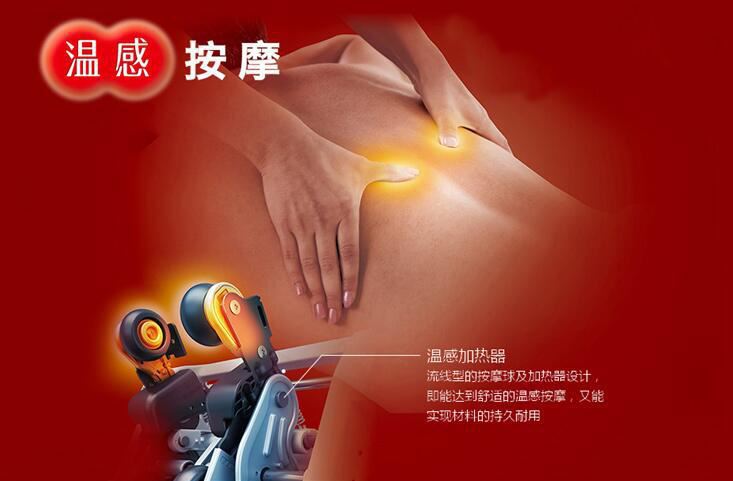 机械与气囊融合的全身气囊按摩:肩部横向按摩,手部手腕的揉捏按摩,腰部大腿的横向按摩,臀部大腿的内侧按摩,小腿的挤压按摩,脚底的3D气囊用力按摩,以及全身的气囊按摩,使整个身体肌肉得以放松舒展。