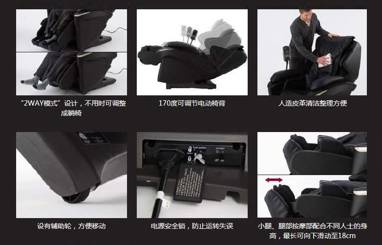 (5)2WAY模式设计,不使用时脚部按摩可往内收纳即可变为躺椅。