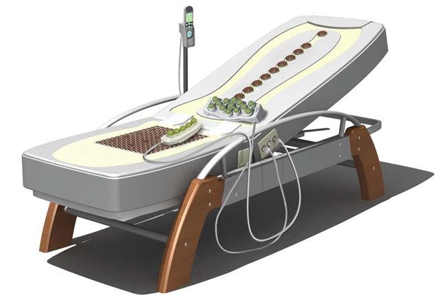 按摩床的尺寸推荐三:家用电动按摩床。这款家用的电动按摩床采用的是振动原理,按摩床的尺寸是74.5x63.5x 49.5cm。而这款按摩床的优点是可以根据不同的人体需求及不同的按摩观念,可设计出不同的气袋分布,满足不同人的需求。