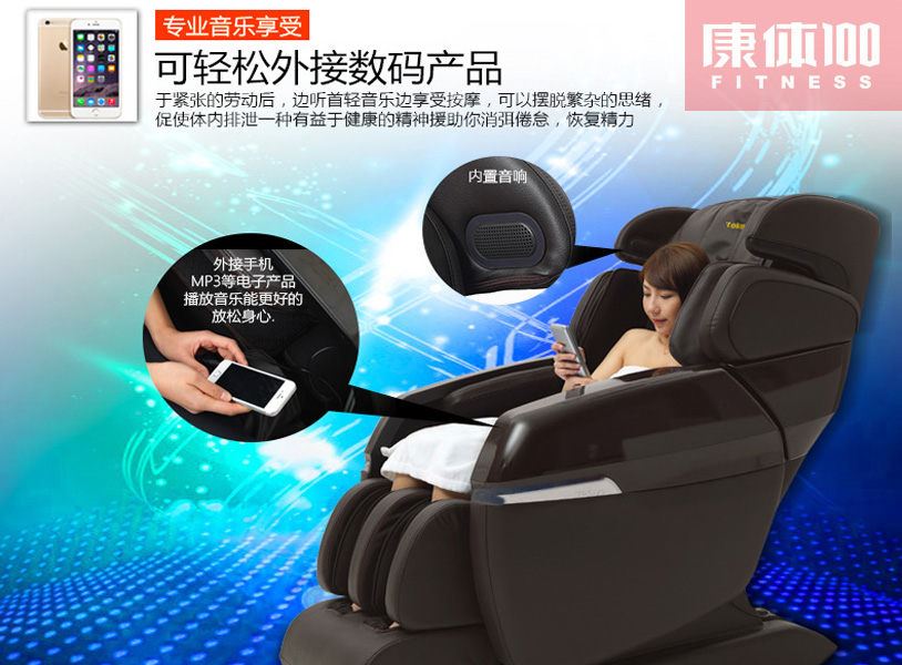 督洋TC688的其它配置当然也不在话下,可以外接手机,MP3等电子产品。紧张的工作和劳动后,边听首轻音乐边享受按摩,可以摆脱繁杂的思绪,让您迅速恢复精力,放松身心。