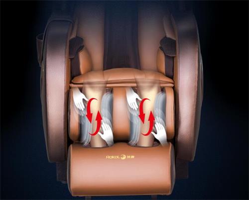按摩椅的机芯可以在导轨上自由行走,它是根据导轨的长度对人体的背部及臀部进行机械手按摩。