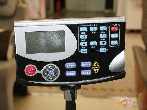 荣泰按摩椅RT6220外观设计十分大气,黑色与银色的搭配,彰显豪华的品质。按摩椅通体采用高档皮质设计,坐上去感觉更加舒适。本机在座椅旁边带有控制器,控制器采用蓝色液晶显示,可以对各项按摩功能进行设置、调整与控制,可以对小腿伸缩量以及小腿架和背架的位置进行随意调整,对MP3功能进行控制操作,更显高端设计。