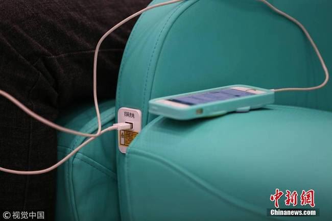 大连豪华候诊室的座位都是按摩椅,还可以为手机充电