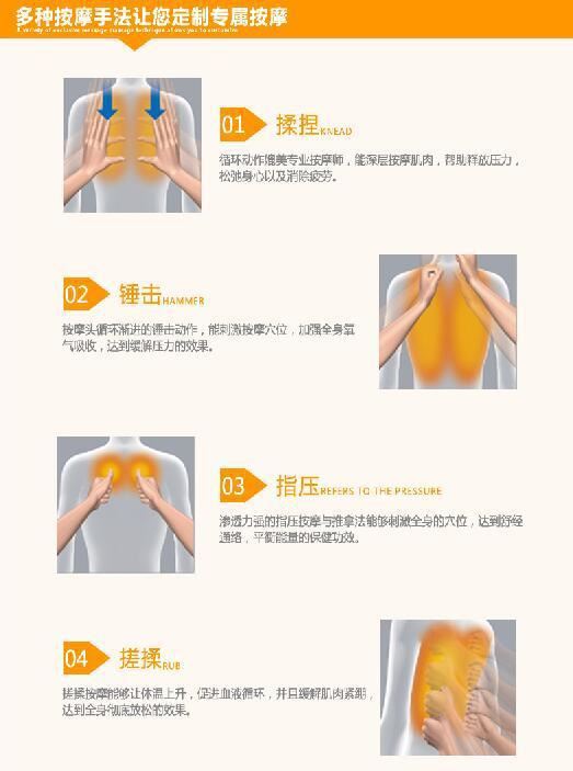 简单地说,3D按摩可以模拟真人按摩,可以更好地缓解肩部、颈部和腰部的僵硬和疼痛;机器”;完成它。而且由于操作时间长,不会感觉热,因为3D按摩动作很精细,并且动作很好,可以达到理想的按摩效果。
