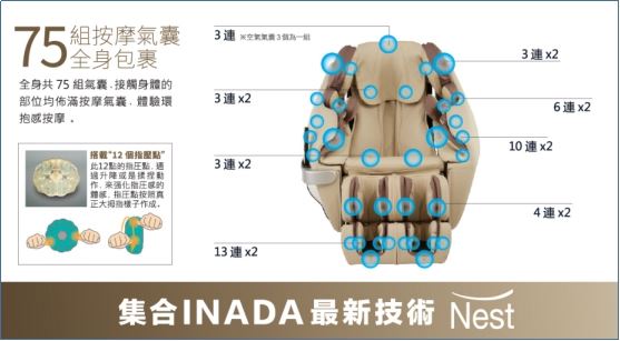 图:采用INADA最新技术的Nest-S999医用按摩椅