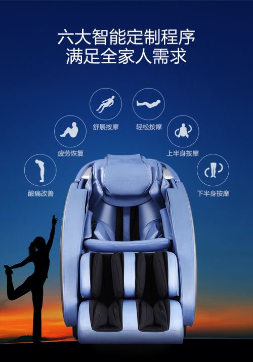繁忙了一天,你是否惘然 畅快会感觉到腰酸背痛?荣泰RT7700推拿椅采取 了3D深层筋膜推拿机芯,推拿力度可渗入渗出到深层筋膜,能帮你深度懈怠酸痛肌肉。推拿椅还内置了6年夜摄生法式,此中委顿规复法式得当于事情之后或晚饭后的规复推拿,可以缓和一天的委顿,酸痛改善法式得当于背腰颈部的酸痛改善,辅助半主动功效,可以有重点相对性地在某个酸痛部位进行规复推拿,在蔓延推拿程式下来次泰式拉筋,可以蔓延筋骨、规复体力,尤其得当久坐短缺活动的上班族。