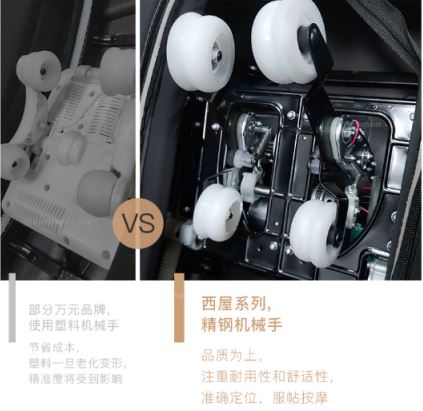 ??在材质上,我们自然不能忽视一台按摩椅的“芯”。西屋S500的机芯与传统按摩椅的不同,市场上某些按摩椅的机芯为了降低成本,采用的是塑料机芯,长时间使用,塑料可能老化变形,影响使用寿命以及按摩的精准度。以品质为上的西屋却采用了3D精钢材质,通过这个精钢3D“机械手”的上下、左右、前后灵活游走,可以深层触达酸痛肌肉,再配合多种按摩手法和精准定位的按摩至人体筋运动人生xuejiazl.org膜,能快速驱赶身体紧绷的酸累感。而且精钢材质不仅能精准定位、贴服按摩,还能大大提高按摩椅的耐用性,让用户可以体验到极致的按摩体验。