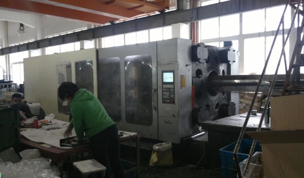 这是注塑车间里面我们工厂最大型的生产设备,800吨的海天注塑机,我们工厂所有的按摩椅塑料件均由我们自己的注塑车间完成。