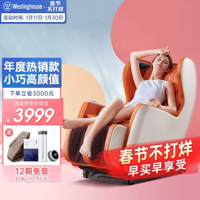 这款Westinghouse 西屋电气 WMC-S530 按摩椅,获得米歇尔研究中心签证,质量保证更放心;支持3年全国联保,5年的电机质保;新增膝盖气囊增高,包裹膝盖两侧,循环按压,按摩更全面;除了气囊按摩,S530还采用了3D精钢机芯,力度渗透至筋膜,精准有力,直击深层酸痛部位;配有液晶触摸大屏,轻轻一点直达程序,还新升级了语音播报反馈功能,老人也能轻松操作;支持腰部、臀部、小腿热敷功能,带来更好的按摩体验。