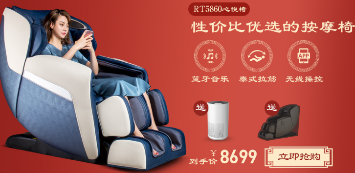 荣泰RT6039按摩椅,节拍扭捏按摩,价钱¥ 10999.00,双十二到手价钱¥8699元。