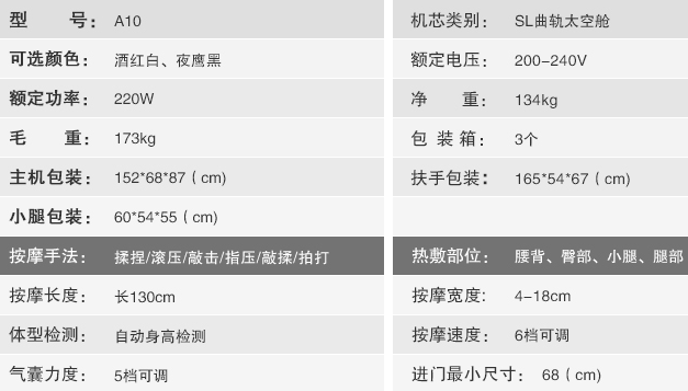 此外,腿部无极伸缩,可依据分歧按摩者的高度,腿部长度,小腿可自由顶出与主动压缩,最年夜伸缩长度可达23CM。还有就是MP3解码器,支撑各类格局的歌曲格局播放。两种色彩具有分歧高尚典雅作风,值得得到。