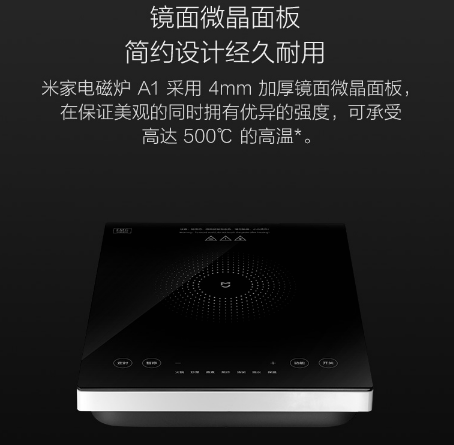 电磁炉在应用中不免被水溅到,高下温差面板就很轻易受损,引发难以预感的效果。米家电磁炉A1采取 的4mm加厚镜面微晶面板,得到更年夜的强度,可蒙受高达500度的温度,在得到简洁年夜方外不雅的同时,给烹调者更好地保险 掩护。