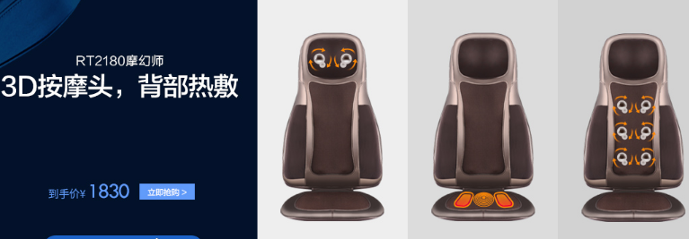 1、荣泰rt2180奢华按摩垫,¥ 1880.00,月销量274,颈部 背部 腰部 臀部