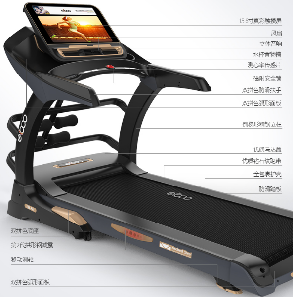 总的来说,S8动感曲线设想,特有分体模具设想,尽显王者风仪。EW3.0欧标芯片,5.0HP强劲马达动力,1500*580mm超年夜跑带面积,18mm5类层贸易跑板,第2代太极拱形钢减震,16档坡度调节,16km/h锋速劲跑,200KG最年夜承重。15.6寸宽屏触摸彩屏,安卓体系wifi上彀,智能影音,支撑APP下载,活动数据共享功效和3D实景模仿体验模式。带有氧风气,ipad娱乐支架,usb音频插口,多功效包含按摩头,扭腰盘和仰卧起坐的应用。