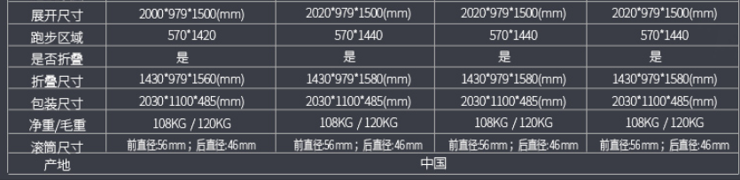 跑带区域150x58cm,跑步机净重108kg,跑步机最年夜承重200kg,坡度调剂方法为电动,连续输出马力3hp,峰值马力5hp,速度调节规模1-20Km/h。