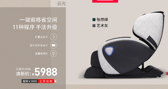 这款可以在天猫官方旗舰店、京东官方旗舰店、苏宁官方旗舰店等购置。三档按摩力度调节,合适来年人应用,也合适年青人应用,价钱不高,6000元阁下。