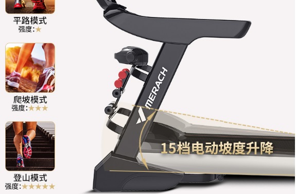 此外,电机1.75HP连续马力,400斤超强承重,1-15档专利坡度扬升,4D双驱越野减震,15.6吋超清年夜屏幕,1-20KM速度调节,全主动加油,1.2㎡占地面积。合适爱好高机能设置装备摆设的人群哦。