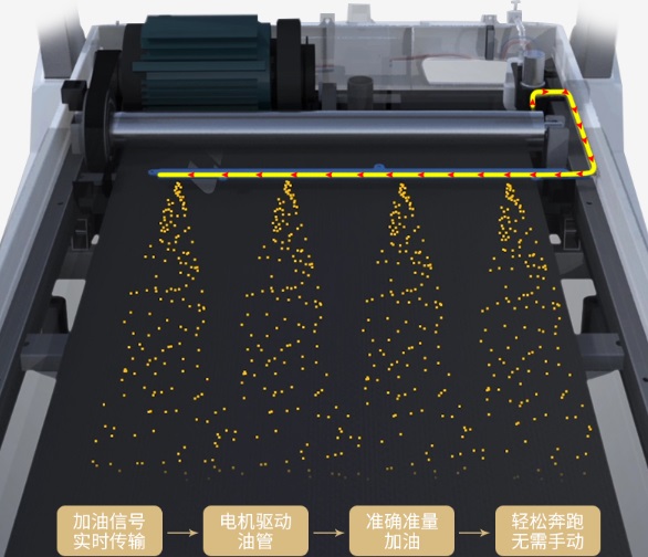 一键式电动加油,跑步机都须要按期加油以掩护跑带,MR007一键式电动加油。只需点击屏幕发出指令就可以掌握加油体系进行准确准量加油到跑带,加油加倍便利不繁琐。