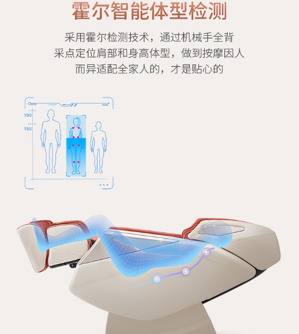 霍尔的身体形状检测技术也是此次OG-7505推广的一年特色。按摩头用于将肩部和身体高度定位在人体的整个背部,为不同的人提供不同的按摩点和按摩方案,为进一步提高按摩精度提供有益的保证。