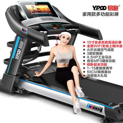 推荐理由:简一多功能跑步机采用专利的水平六级减震技术,充分区分跑步机的防碰撞和攻击能力;18档电动斜坡,结合科学变速跑,有利于推广和锻炼。它可以连接手机和蓝牙称重秤,主动显示系统数据,并根据各种数据和用途生成私人活动计划。
