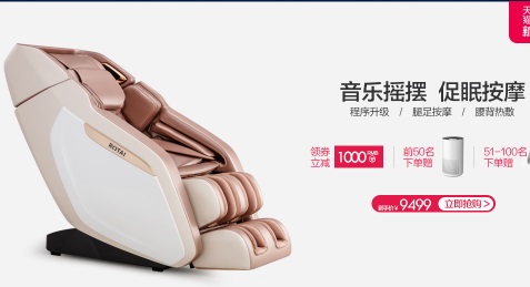 第二款:荣泰5860——适合经济适用房,价格为9599.00元。超长SL型导轨125厘米按摩游,腰部热敷,泰式系带。对于10000元的荣泰来说,性价比非常高。