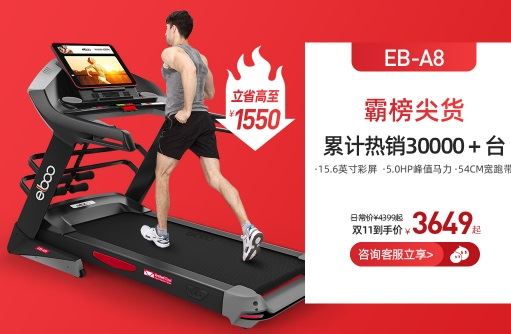德国elboo Yibu A8跑步机,54cm宽跑步机,双色流线型,德国精工品质,重载承载。