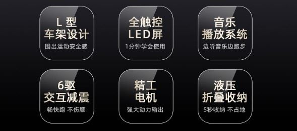 这款跑步机还配置了多层结构型避震软跑板,加厚跑板厚度且加强承重,多层护膝结构舒适稳定回弹,达到更佳的消音缓震效果;并且采用了由细草纹耐磨表层、PEP隔音层、EVA消音层、避震软垫层、减震加强层、压缩层、承重层等七层组成的消音减震跑带。