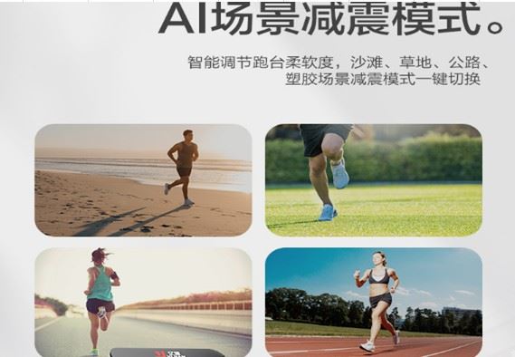在操作面板还有调节减震模式的按键,其实AI柔性减震的原理就是通过对气囊进行充气和放气、减震弹簧以及高弹性跑板等多重减震结构的配合模拟出不同场景下的实际跑步感受。