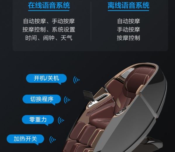 4、AI语音智能:这款在线货离线均可支持,动动口就能简单操控按摩椅,四麦声控,灵敏交互,精准识别指令,操控准确便捷,解放双手,轻松休憩。