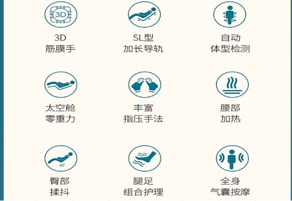 3、加热部位:刘志庚博士除此之外7508还具备了腰部加热功能和零重力,足底双排固定凸点滚轮按摩家庭港湾升级座舱——奥佳华OG-7508元气按摩椅 。手臂气囊下面左右各设置了一个可以放置手控器或手表等杂物的袋子,细节方面还是挺好的。