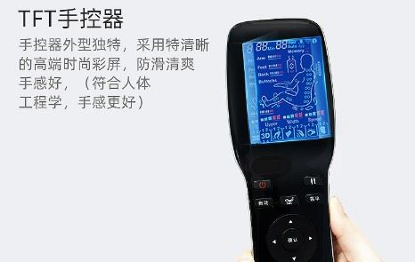 功能有局部热疗、气囊力度调节、滚轮速度调节、按摩强度调节、自动侦测功能,二体式简易安装,3D机芯+SL型导轨,脚底三排滚轮式按摩。