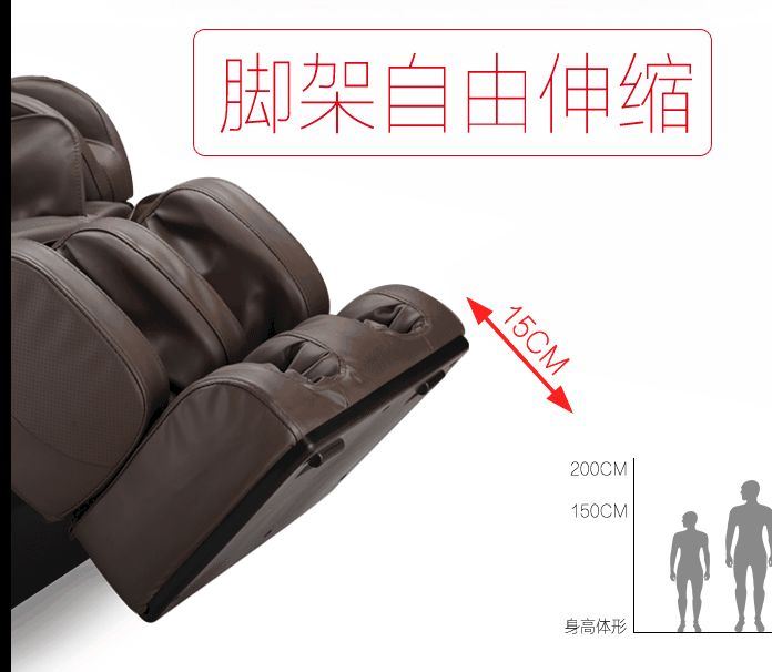 1、自动感应伸缩,小腿伸缩很多按摩椅都有,但很多都是机械伸缩,需要一直用脚顶着,时间久了比较累,这款是通过识别身高,自动伸缩,体验更好