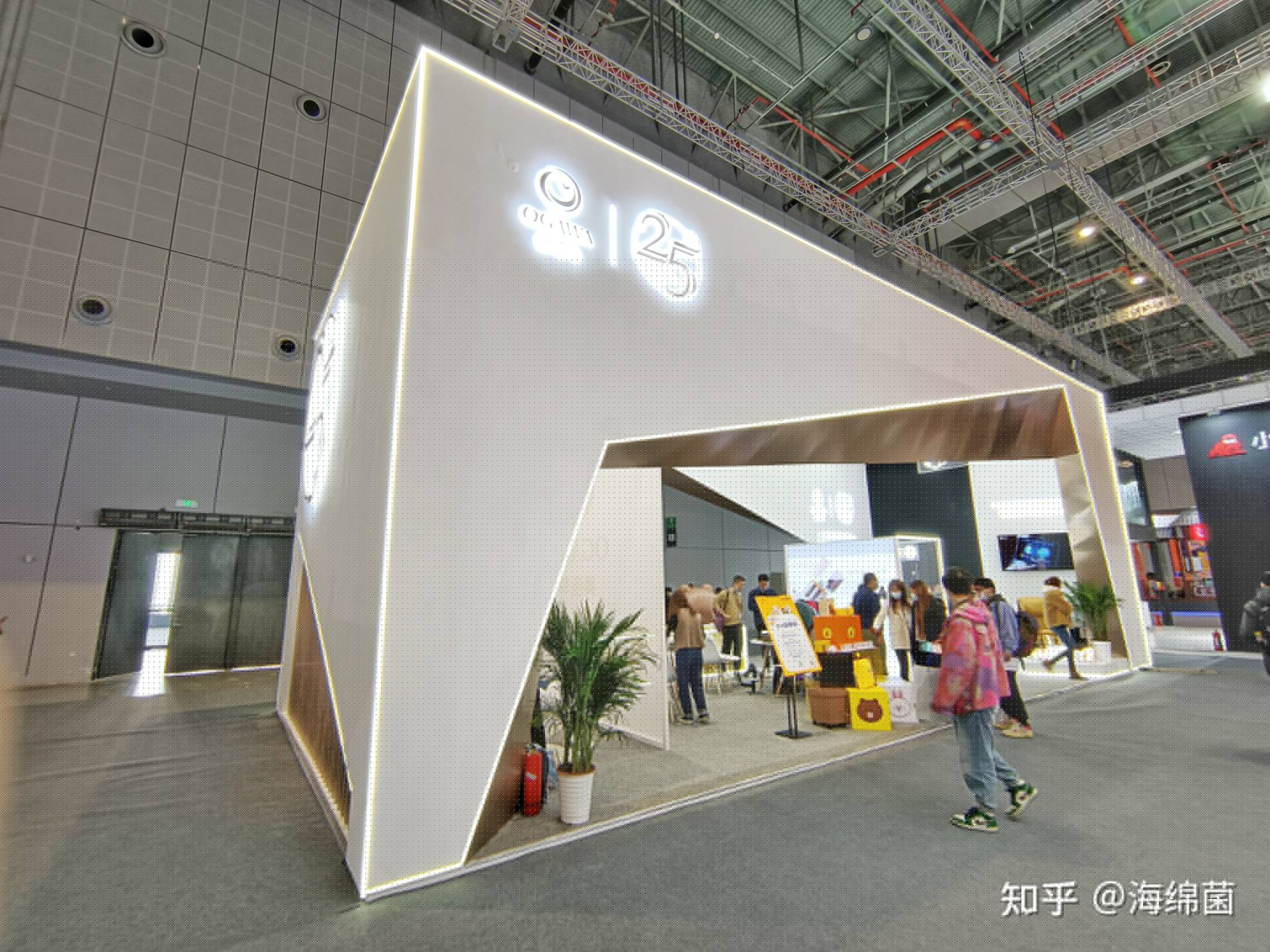 展台风格很北欧很简洁,几何切割的白色外观,在一众或深沉或华丽的品牌展台中反而格外凸显。