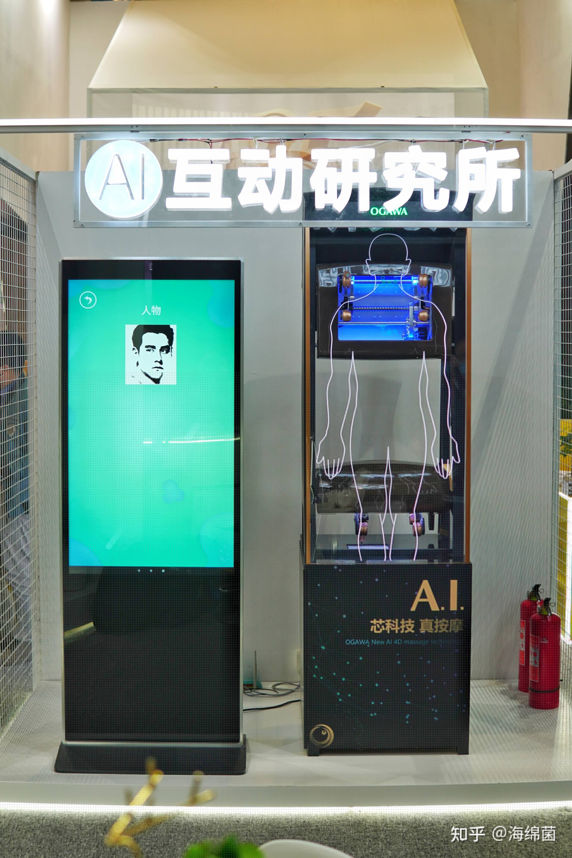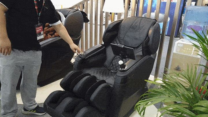 接下来海绵要体验的这款OG-8598AI按摩机器人就是展台的重头戏了,请各位看好了: