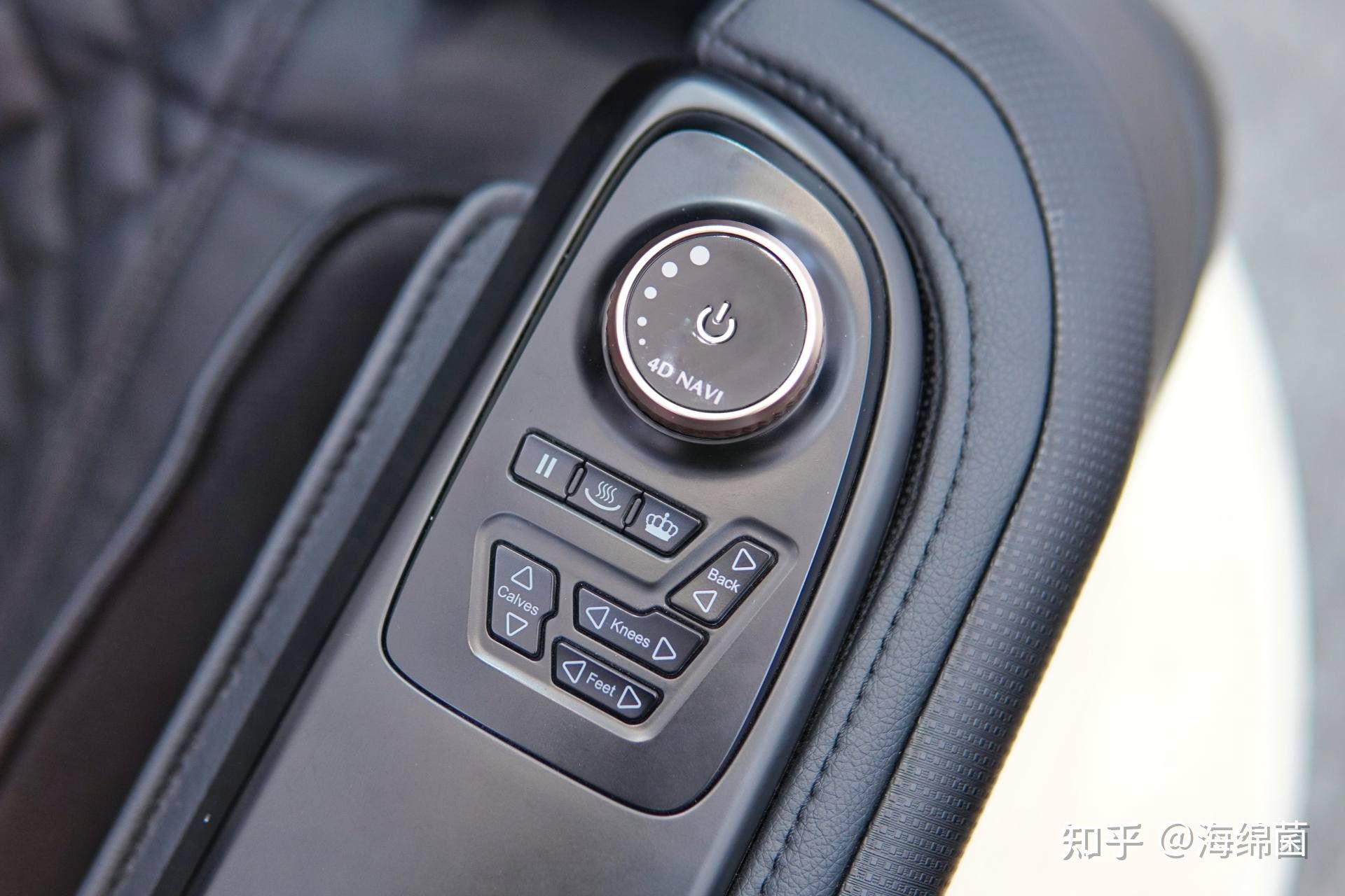 每个人的小腿长度不同,为了能更好的包裹住膝盖位置,机器右扶手上有专门的调整膝盖位置的按键,这样就能完美匹配不同身型的人了。