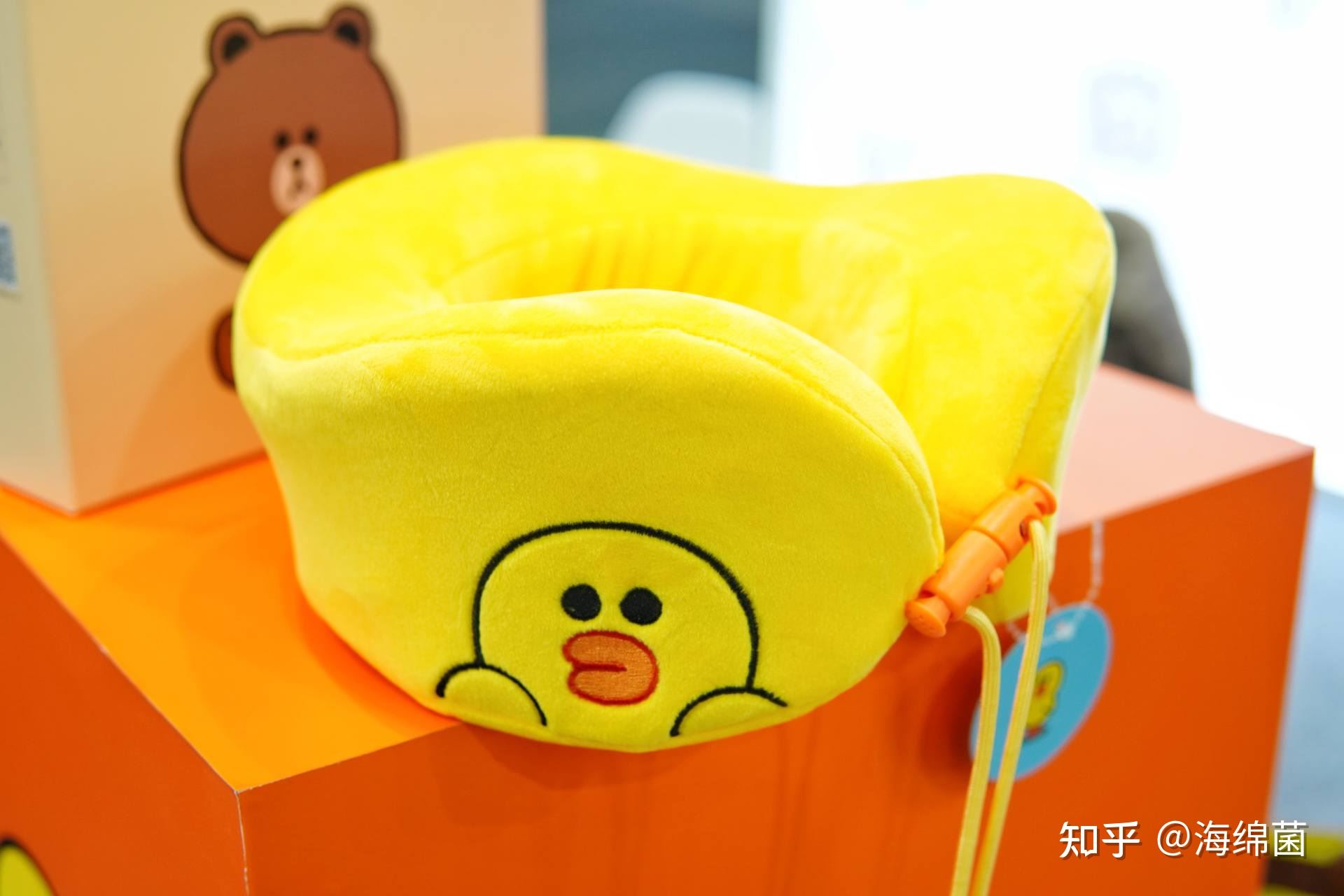 类似的产品还有一款带颈椎按摩效果的U型枕,同样可爱度爆表,同样有莎莉鸡和布朗熊两个配色。