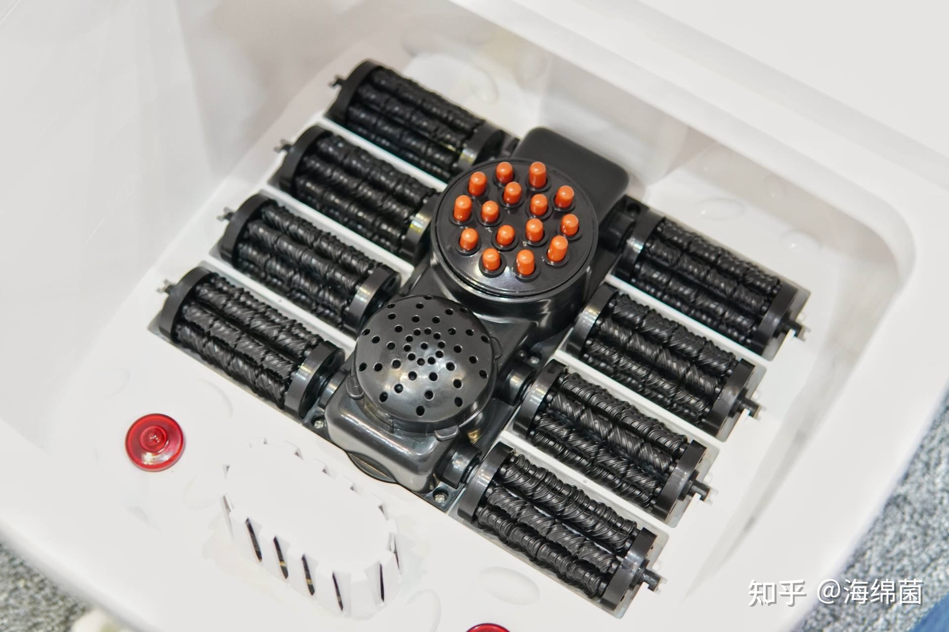 按摩滚轮大范围覆盖盆底,还有红色揉顶凸点设计,可以欢畅的享受一场足底按摩spa了~虽然这款足浴盆现场不能试用,但目测观感和手感很不错。各位养身boy,养身girl可以行动起来了~