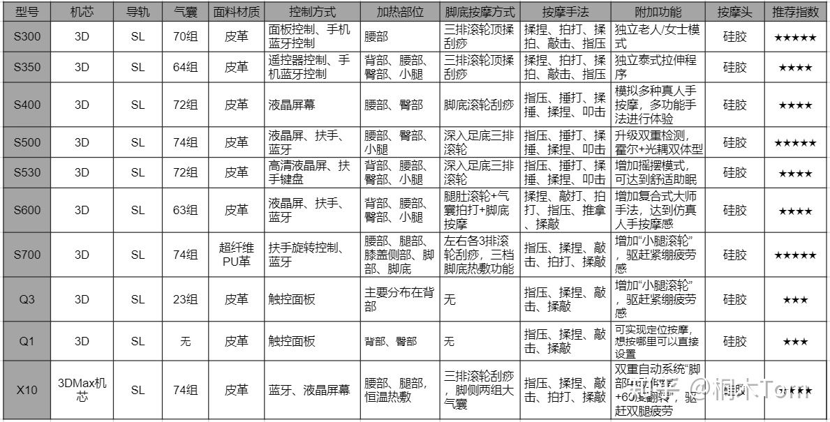 综合西屋按摩椅,感觉性价比最高的三款是: