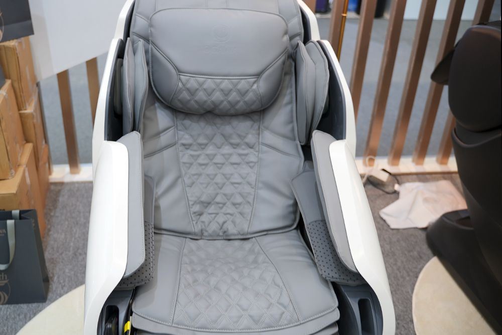 在体验区最吸引到我的是这台奥佳华的OG7306,正好我家里用的也是同款,其实它是HUAWEIHiLink首款合作按摩椅,除了常规的按摩功能也支持与华为的智能家居APP进行联动控制。当时选择它是媳妇在戚薇的直播间种草的,首先就是看中了颜值,白色的机身外观在同类产品中还是非常时尚的。