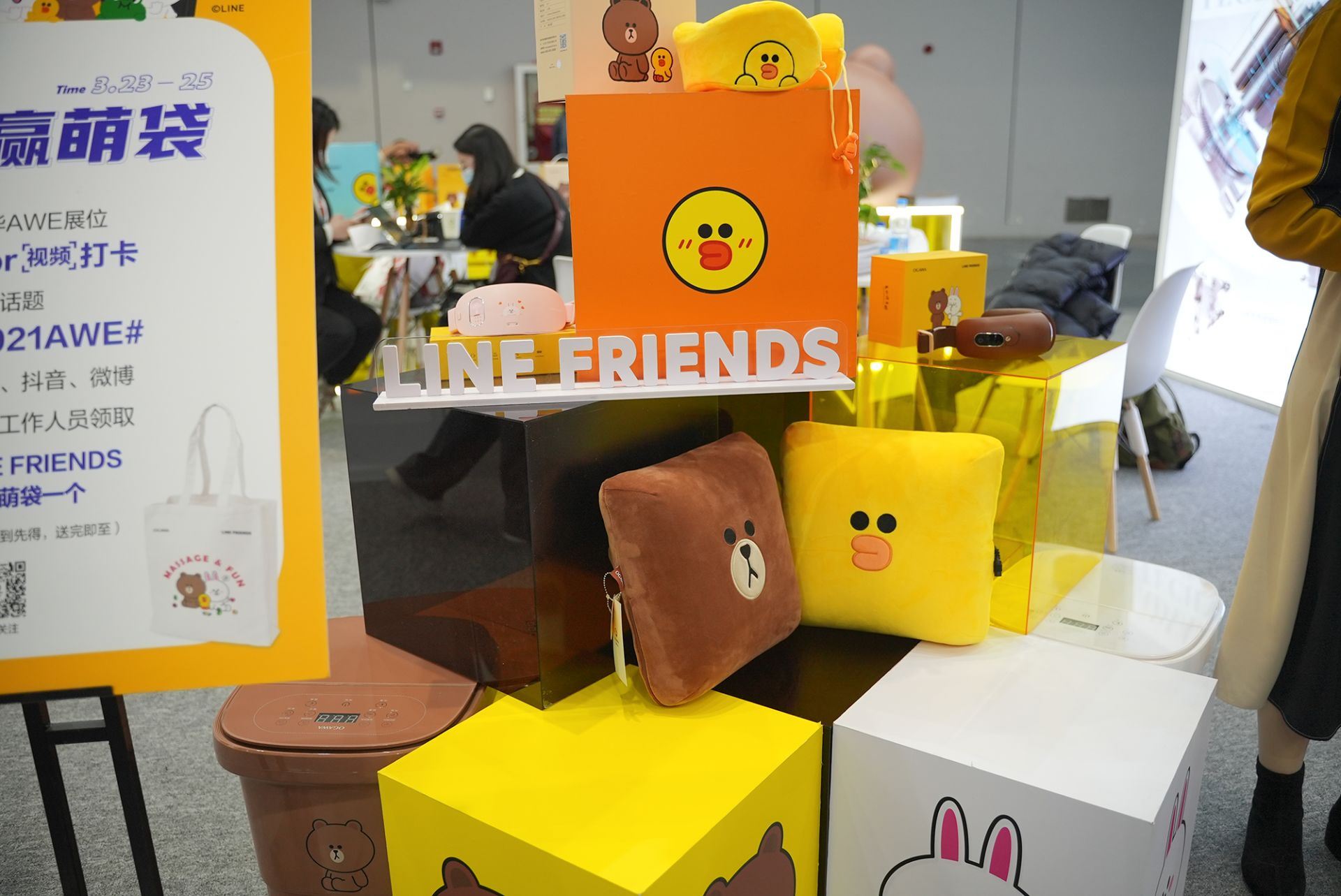 首先我来到的是奥佳华的展台,因为也曾购买过他们家的产品,所以今天重点去探展参观一下??梢钥吹秸固ㄈ肟诖σ桓霾祭市?,这应该是奥佳华和LINEFRIENDS合作推出的系列产品。