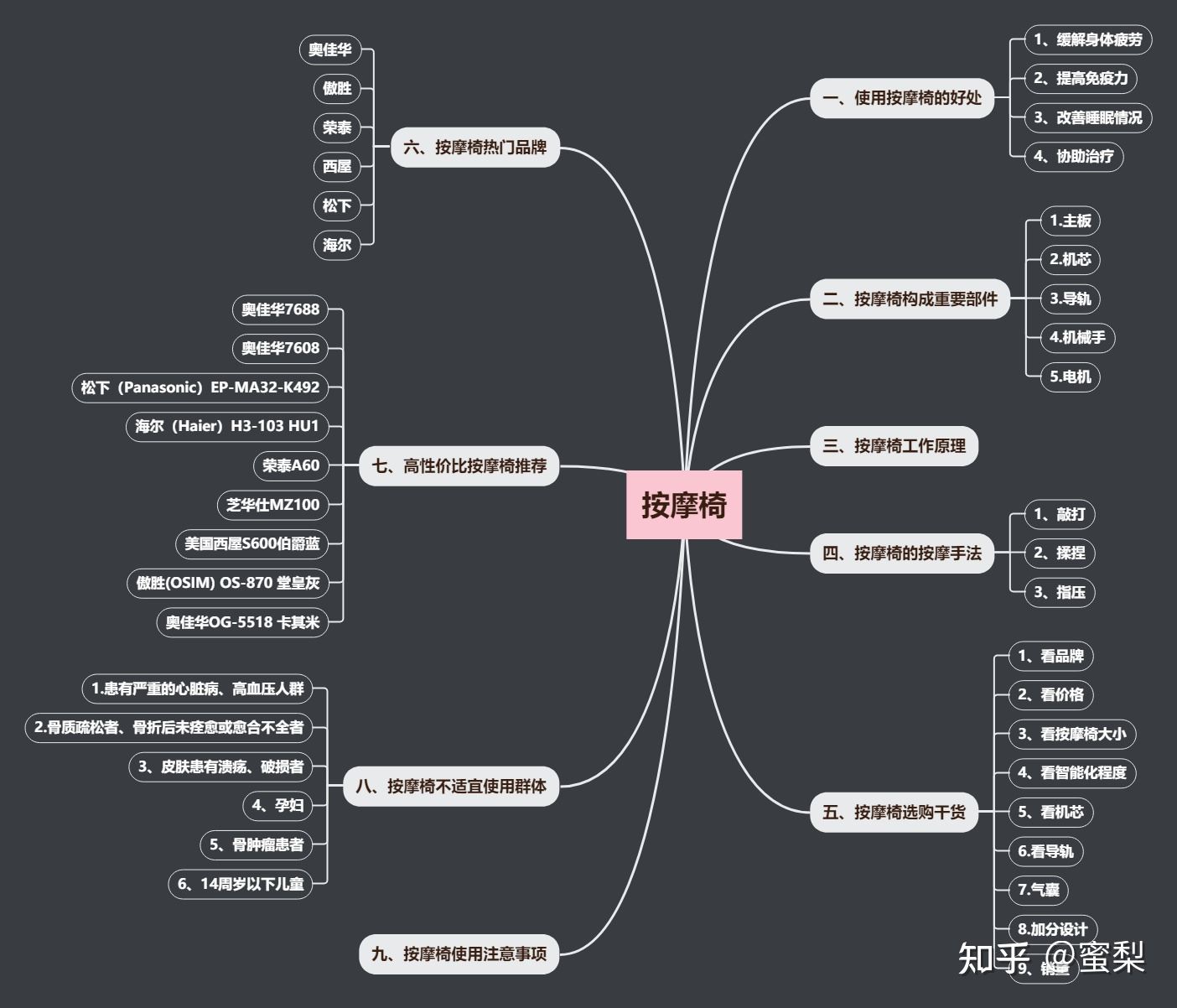 一、使用按摩椅的好处二、按摩椅构成重要部件三、按摩椅工作原理四、按摩椅的按摩手法五、按摩椅选购干货六、按摩椅热门品牌七、高性价比按摩椅推荐八、按摩椅不适宜使用群体九、按摩椅使用注意事项